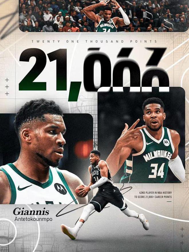 雄鹿大胜篮网结束7连败 字母哥三节29+8迎21000分里程碑