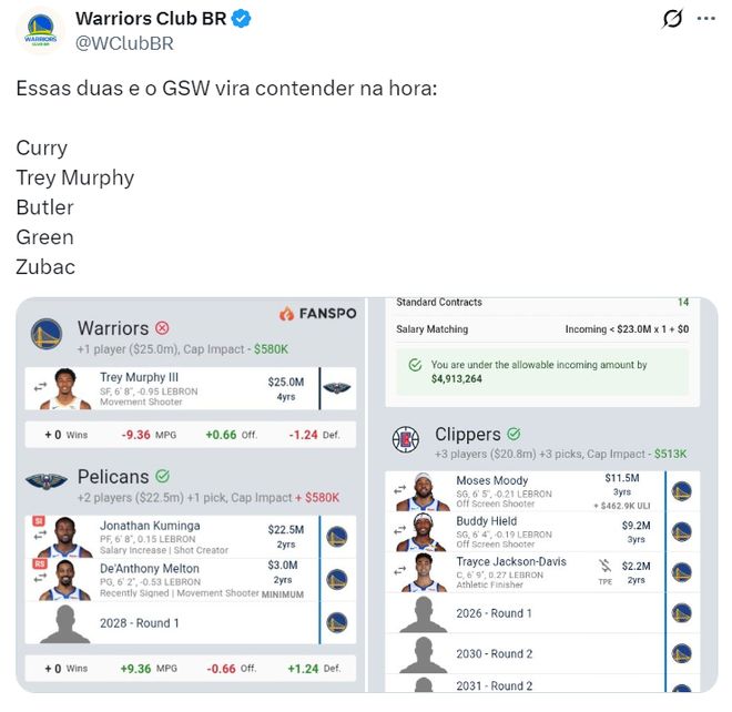 勇媒Warriors Club BR还真模拟了两套方案换取墨菲与祖巴茨,