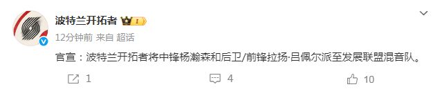 12月15日,开拓者官方消息,将杨瀚森和吕佩尔下放至发展联盟。