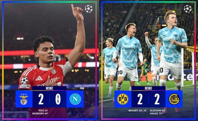 穆里尼奥带领本菲卡主场2-0击败上赛季意甲冠军那不勒斯,挪超球队博德闪耀客场2-2战平多特蒙德!